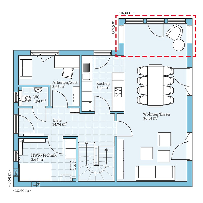 We have also designed several different versions of this Villa. Simply talk to your Hanse Haus consultant and let us show you the many possibilities in detail. Together, we’ll find the design that suits you perfectly.